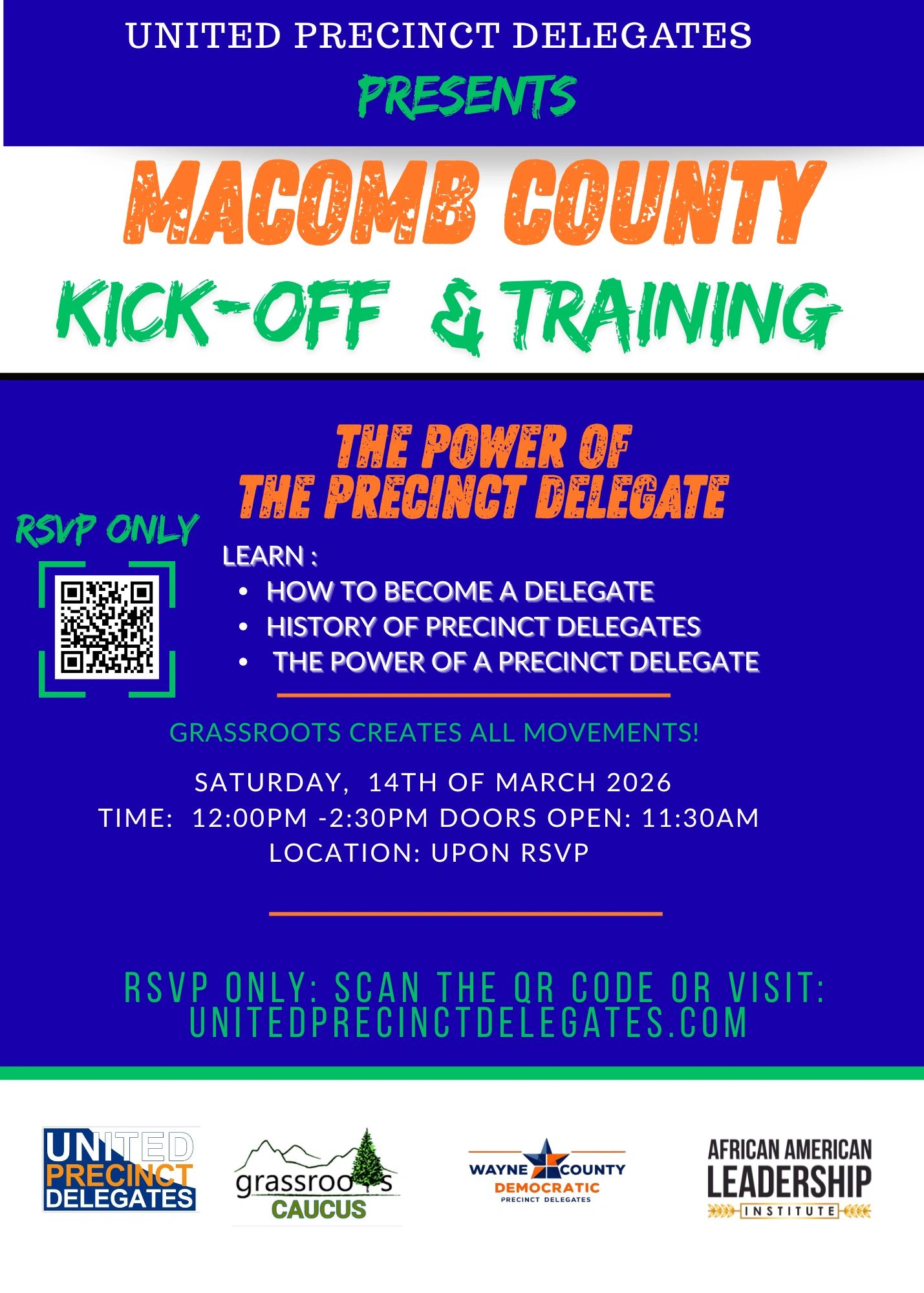 Get ready, Macomb County! This powerful kickoff and training is designed to activate, educate, and mobilize grassroots leaders who are ready to step into their power.